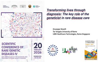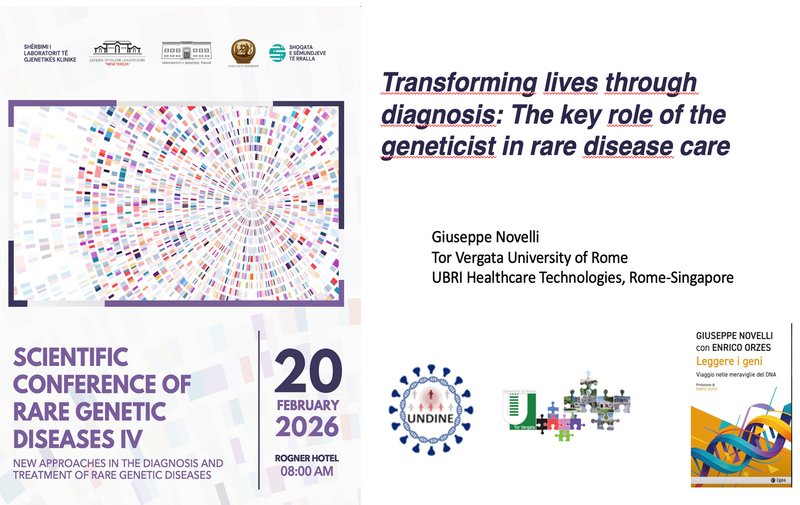 Prof Giuseppe Novelli (UNITOV) gave an oral presentation at the International Conference on Rare Diseases in Tirana/Albania on February 20th, 2026. The title of his presentation was: Transforming lives through diagnosis: The role of the geneticist in rare disease care. A key aspect of UNDINE's research is the search for rare gentetic defects that account for severe cases of Covid 19 (cf. work package 4) and Long-Covid (cf. work package 7). Accordingly, Prof. Novelli's lecture referred to the studies within UNDINE at this conference, disseminating the results of the project to the scientific community.